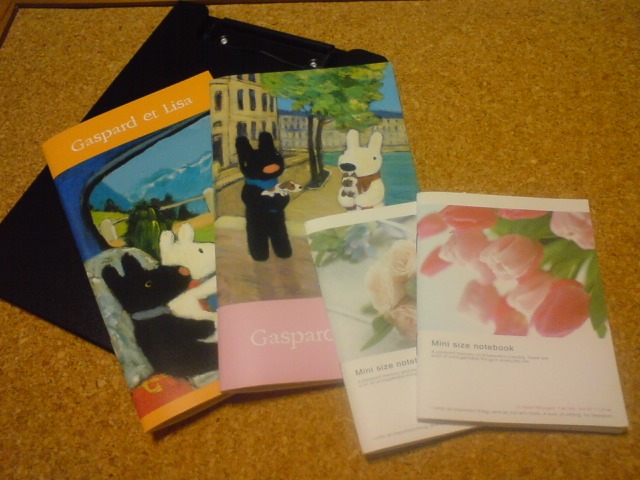 A5のクリップボード。A5スリムサイズのリサとガスパールのノート。B7のミニノートブック。 どちらもトラベラーズノート用に購入したが、幅が少し大きかったので、単品で使用。