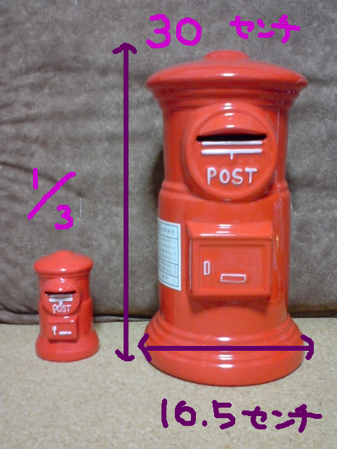 赤い郵便ポストの貯金箱。