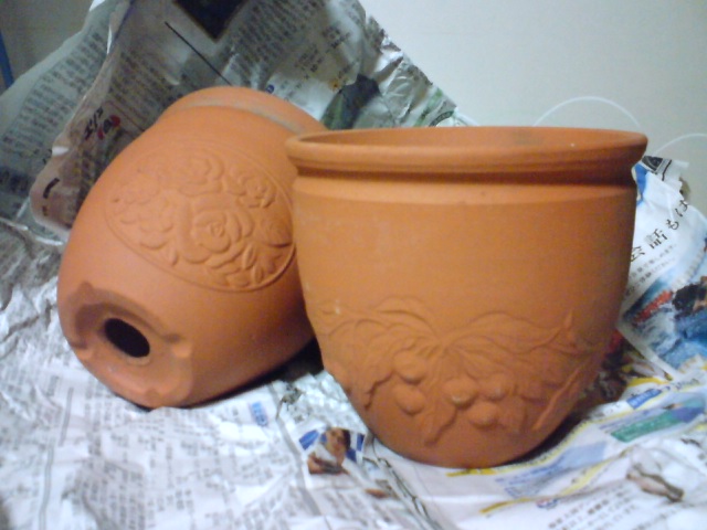 これは素焼き鉢の5号鉢、一個150円。15%引きなので、二個で255円。粘土の鉢は素焼き鉢、駄温鉢、テラコッタの順で水はけが良い。つまり高い温度で焼く程丈夫で水はけが悪くなるわけだ。釉薬のかかった化粧鉢なんかは、もちろん水も空気も通さない。
