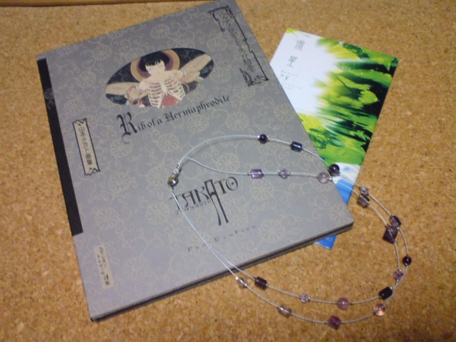 トルコ石のクロス。お気に入りのシルバーとレザーのお店ALZUNIで買った。 リンクくらい貼るべきなのかもしれないが、ホームページはまっ白で、通販とか製品の写真は載っておらず、名古屋市近郊の店舗情報しかない。きっとサイト作る人がいないんだね、今時。この中では一番高い鎖も同じ店のもので気に入っている。今は潰れてしまった生活倉庫(現ビックカメラ)のチェーン店で、ミッチーの『パズルの欠片』リングも手に入れた。スタイリストさんが中部地方で仕入れたに違いない(笑)