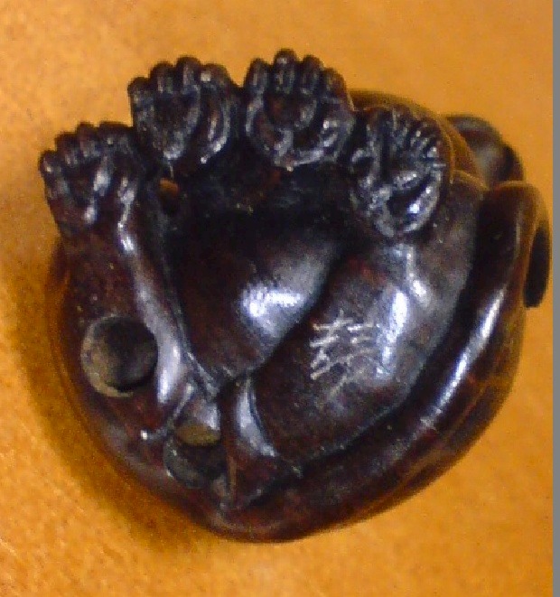 でもさー、ひもを通すと逆さにならんか、これ。お値段はいくらかというと、新品の招き猫が3匹くらい買える。根付けは象牙なんかだと莫迦高い。
