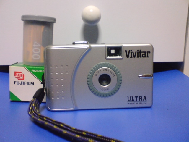 3750円なり。オールプラスチック製で、重さはわずか75g。フィルムを入れる、シャッターを押す、巻き上げる。それだけだ。バカでも○○○でも撮れるカメラ。(すでに死語、差別用語なので推測するべからず)